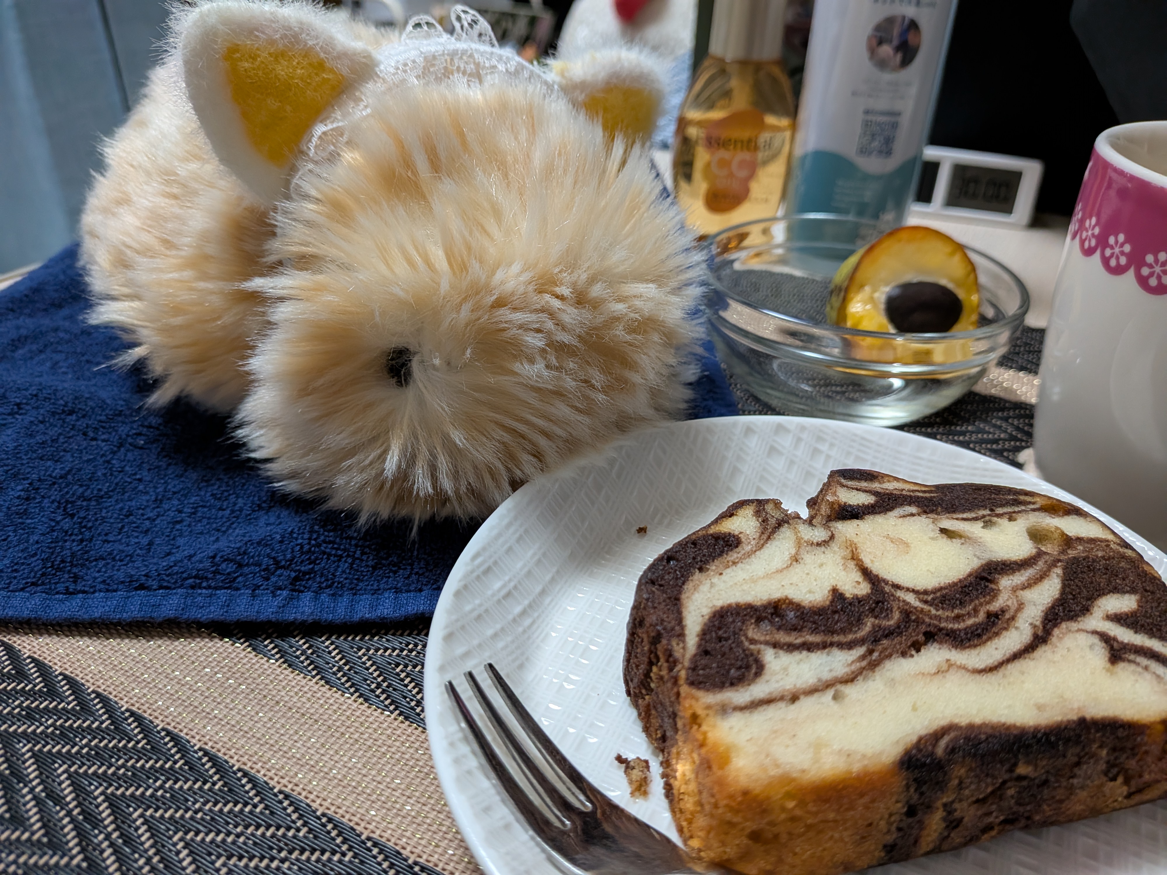 最近おうちdeシャンプーできるセットを買ったのでふわふわつやつやな毛並みで祝われてご満悦なこまりさんとモカミルクパウンドケーキ。香月堂のモカミルクパウンドが程良いお味・美味しさでちょっとしたご褒美にぴったりで最近ちょっとハマってる。
