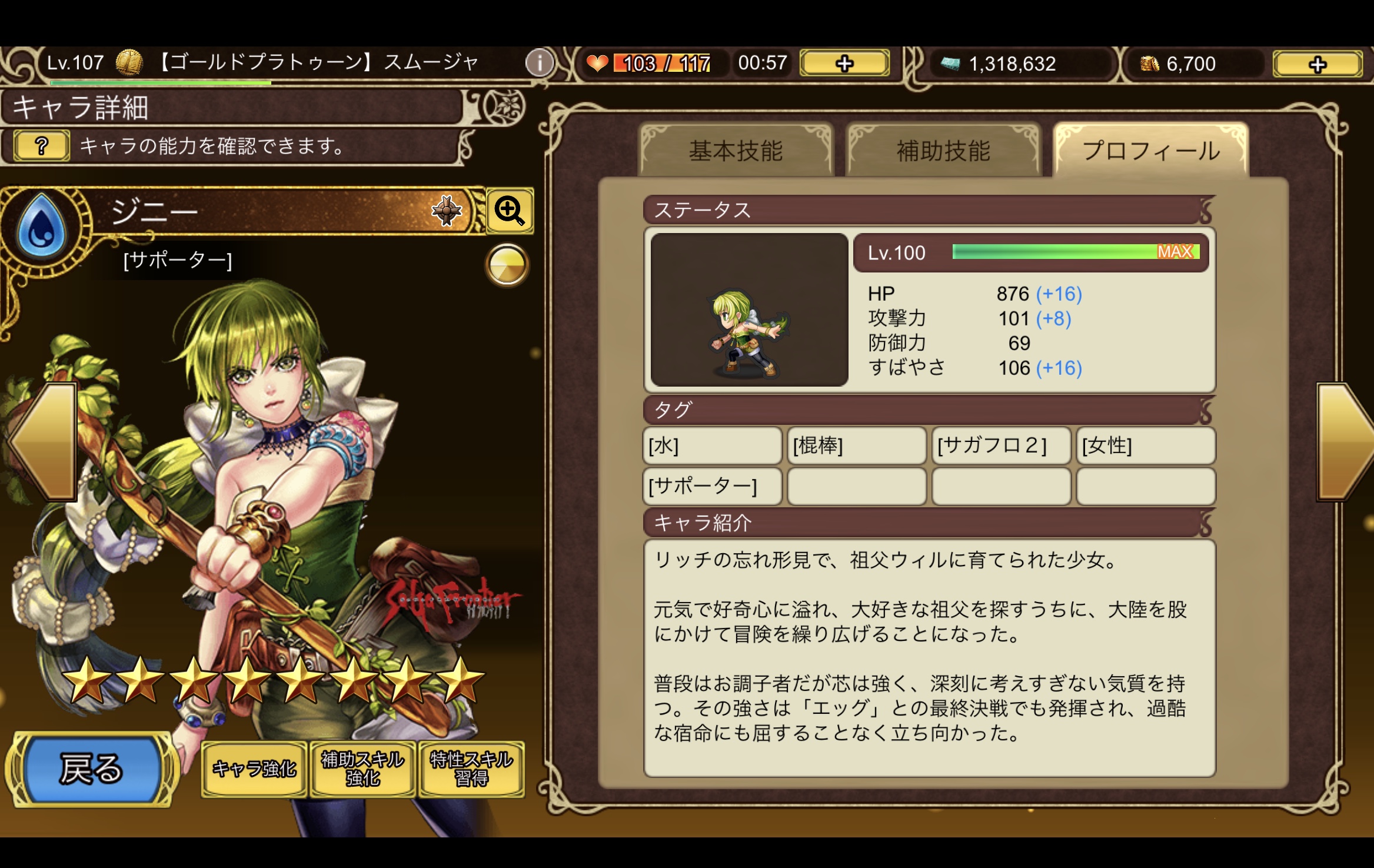 奥義が全体攻撃でサポートスキル持ちなので、鍛えてみます。
